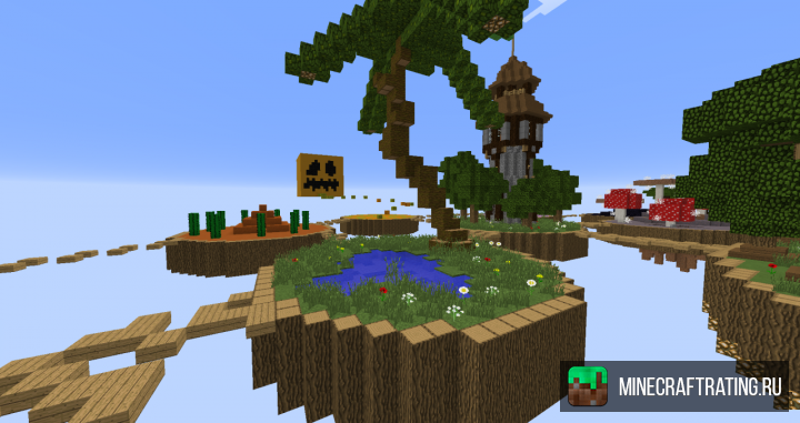 Карта представляет собой огромное скопление летающих островов, на которых вам и придется сражаться с противниками. Каждый остров имеет свои уникальные особенности, а перемещаться между этими клочками земли довольно непросто. Для этого вам потребуется освоить хотя бы минимальные навыки паркура.